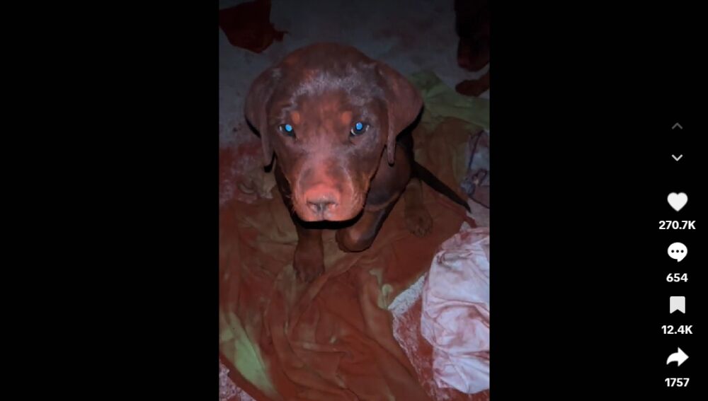 En el vídeo, la chica no llega a revelar qué es exactamente ese producto rojo con el que estaba manchado todo, incluídos los tres mini rottweilers, y en las respuestas cada uno ha aportado sus teorías. La más lógica es que se trataba de pintura en polvo u ocre de un tono rojizo, que al parecer no es tóxico para los animales.