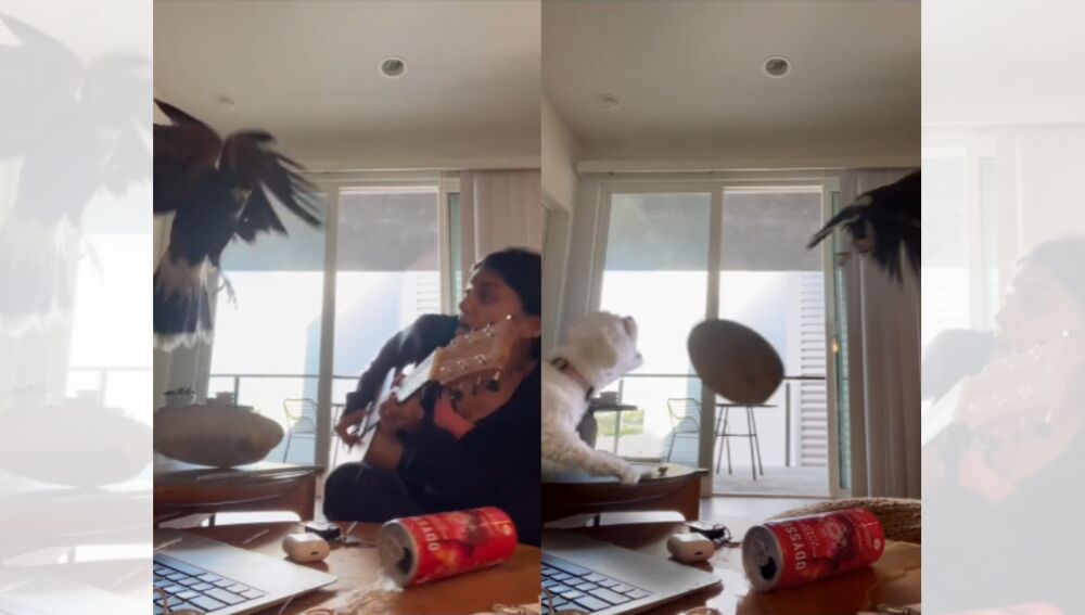 Este suceso ocurrió mientras la joven estaba practicando con la guitarra, momento en el que el águila aparece en el plano al asomarse por el balcón y, finalmente, decide volar hasta colocarse sobre una mesa. Pero, aun así, hasta el momento en el que su perro no empieza a ladrar para advertirla y que el águila vuela hasta su lado, Nikki no se da cuenta que de lo que está ocurriendo detrás de ella. Y, como era de esperar, el susto que se ha llevado esta tiktoker no ha sido pequeño, ya que se ha levantado de un salto y ha salido corriendo en cuanto la ha visto para poder alejarse de ella.