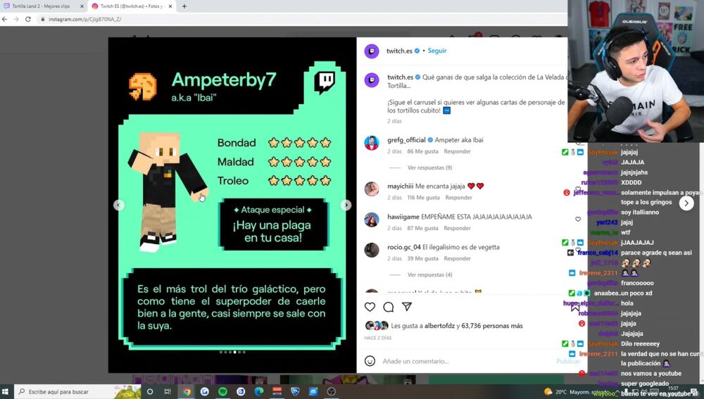 El streamer ha revelado que tanto él como muchos de sus compañeros están hartos de los problemas que les da Twitch, y una publicación de Instagram de Twitch España habría sido, para él, la gota que colmó el vaso. En ella, se hacen fichas en tono humorístico de algunos de los principales protagonistas de TortillaLand, con pequeños seudónimos. Al hacer la ficha de Ampeter, hubo varios detalles que no gustaron mucho al streamer. Con una broma como esa, sumada a los conflictos que han sucedido últimamente, es más que comprensible que Ampeter se haya planteado seriamente trasladar sus emisiones en directo a YouTube.