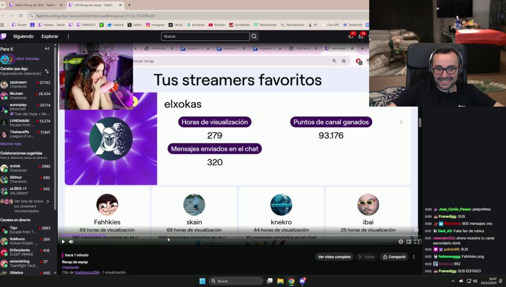 Con la llegada de diciembre, la plataforma Twitch ha activado su función Twitch Recap, que permite a cada usuario consultar cuáles han sido los canales que más ha visto a lo largo del año. Como es habitual, muchos creadores comparten públicamente estos datos, convirtiendo el resumen en una fuente constante de comentarios y reacciones en redes sociales.