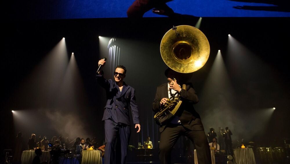 Al levantarse ese telón virtual, la luz dejó ver una gran sala de fiesta típica de las películas de la época dorada de Hollywood, de esas que protagonizaban Rita Hayworth o Humphrey Bogart, con camareros, orquesta, barra, mesa y público de etiqueta incluidos.