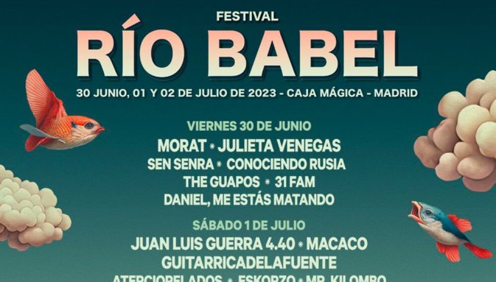 La principal premisa del Río Babel y su seña de identidad continúa siendo tender puentes con América Latina, lo que se demuestra con la presencia de grandes referentes como Juan Luis Guerra 4.40, Morat, Julieta Venegas, Aterciopelados, Conociendo Rusia o Bomba Estéreo de República Dominicana, Colombia, México y Argentina. Además de contar com la siempre importante presencia de un gigante internacional como Jamiroquai. Un cartel en el que tampoco faltan nombres patrios como los de Guitarricadelafuente, Macaco, Alizzz, Sen Senra o La M.O.D.A., entre muchos otros.