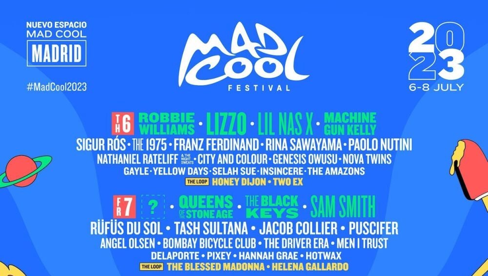 La sexta edición del festival Mad Cool, que se celebrará en Madrid del 6 al 8 de julio de 2023 ha anunciado gran parte de su cartel. El festival madrileño se reduce de las cinco jornadas que tuvo en la edición pasada a las tres que tendrá este 2023 que también tendrá un cambio de recinto de Valdebebas a Villaverde.