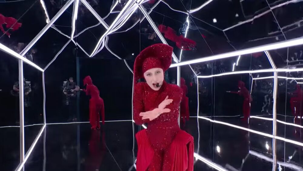 En su presentación musical, Gaga ofreció una impactante interpretación de su sencillo Abracadabra, cantándolo dentro de una caja de espejos iluminada que añadió un aire místico a su actuación. Más tarde, sorprendió al público al iniciar la primera mitad de su nueva canción Killah en los pasillos traseros del estudio, antes de trasladarse al escenario principal, donde se unió a su banda vestida con atuendos de neón. En un impresionante momento de la noche, realizó un cambio de vestuario en vivo, demostrando una vez más su talento para la teatralidad y la puesta en escena.