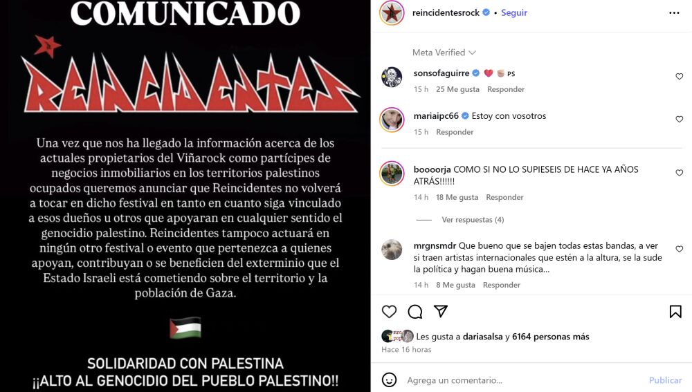 Es cierto que, aunque KKR sea actualmente el propietario último de estos festivales, no parece tener una implicación directa en su gestión artística. El caso más evidente es el del Viña Rock, un festival con una fuerte identidad política en el que han participado numerosas bandas de izquierda. Este año, Fermín Muguruza, abiertamente comprometido con la causa palestina y crítico con los crímenes cometidos por Israel, fue uno de los principales cabezas de cartel.