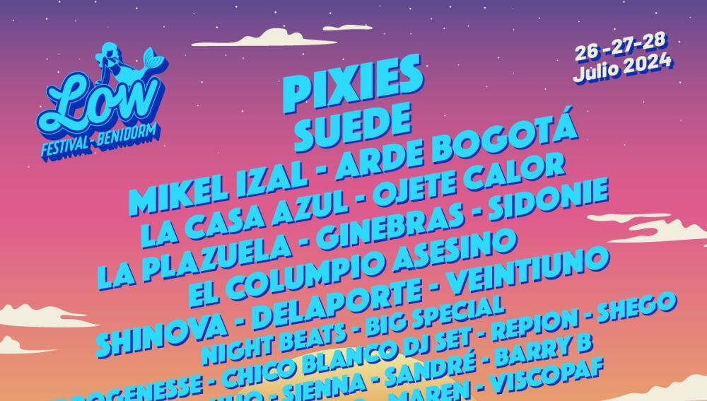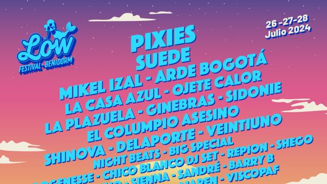 Dos gigantes del rock alternativo como Pixies y Suede encabezan cartel anunciado por la organización del Low Festival 2024, que se celebrará del 26 al 28 de julio en Benidorm (Alicante). Un cartel en el que destacan nombres españoles como Mikel Izal, Arde Bogotá, La Plazuela o Ginebras entre otros y al que todavía le quedan muchos artistas por anunciar.