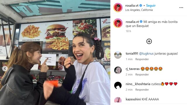 Rosalíaha revolucionado las redes sociales al subir un carrusel de fotos junto a Lisa de Blackpink en su perfil de Instagram. Esta amistad ha pillado a millones de fans por sorpresa, quienes no pueden estar más felices de que dos de sus favoritas se hayan conocido y que, encima, se hayan llevado tan bien. Rosalía ha compartido estas fotos junto al comentario "Mi amiga es más bonita que un Basquiat", a lo que Lisa ha respondido con varios corazones.