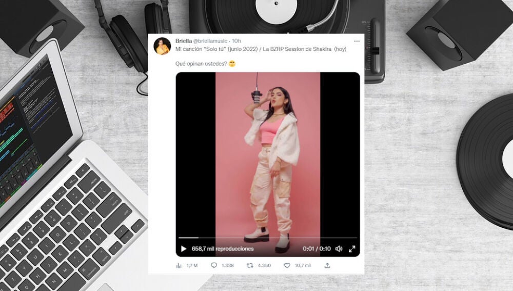 La artista venezolana Briella, conocida en redes sociales como BriellaMusic, ha visto el parecido entre el estribillo de una de sus creaciones y el de la BZRP Music Session #53 y no ha dudado en compartir este vídeo comprando ambas canciones.