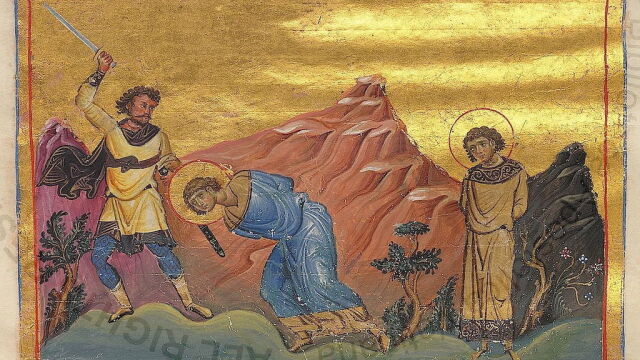 Cuentan que tras ser obligados a vestirse de mujer y una penosa marcha, Baco fue golpeado hasta la muerte, y al pobre Sergio le obligaron a correr 18 millas con un calzado que tenía clavos hacia dentro y luego fue decapitado. Sí, ya sé que 18 millas con clavos parece mucho pero las historias de santos son así de fabulosas.