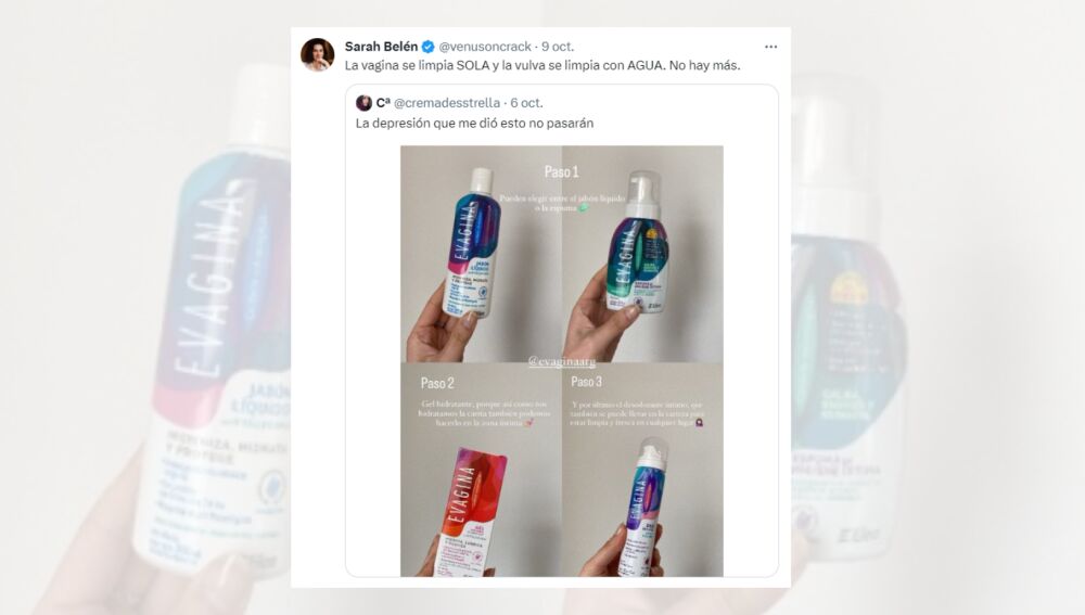 Porque si ya de por sí existe un gran desconocimiento sobre el cuidado de esta zona íntima, el hecho de que haya personas promocionando este tipo de productos solo consiguegenerar confusión y desinformar más a todos. Tal y como ha compartido la tuitera Sarah Belén, la realidad es que "la vagina se limpia sola y la vulva se limpia con agua", por lo que utilizar esos productos puede ser más perjudicial que beneficioso a la larga, ya que puede generar problemas y alterar el pH de esta zona.