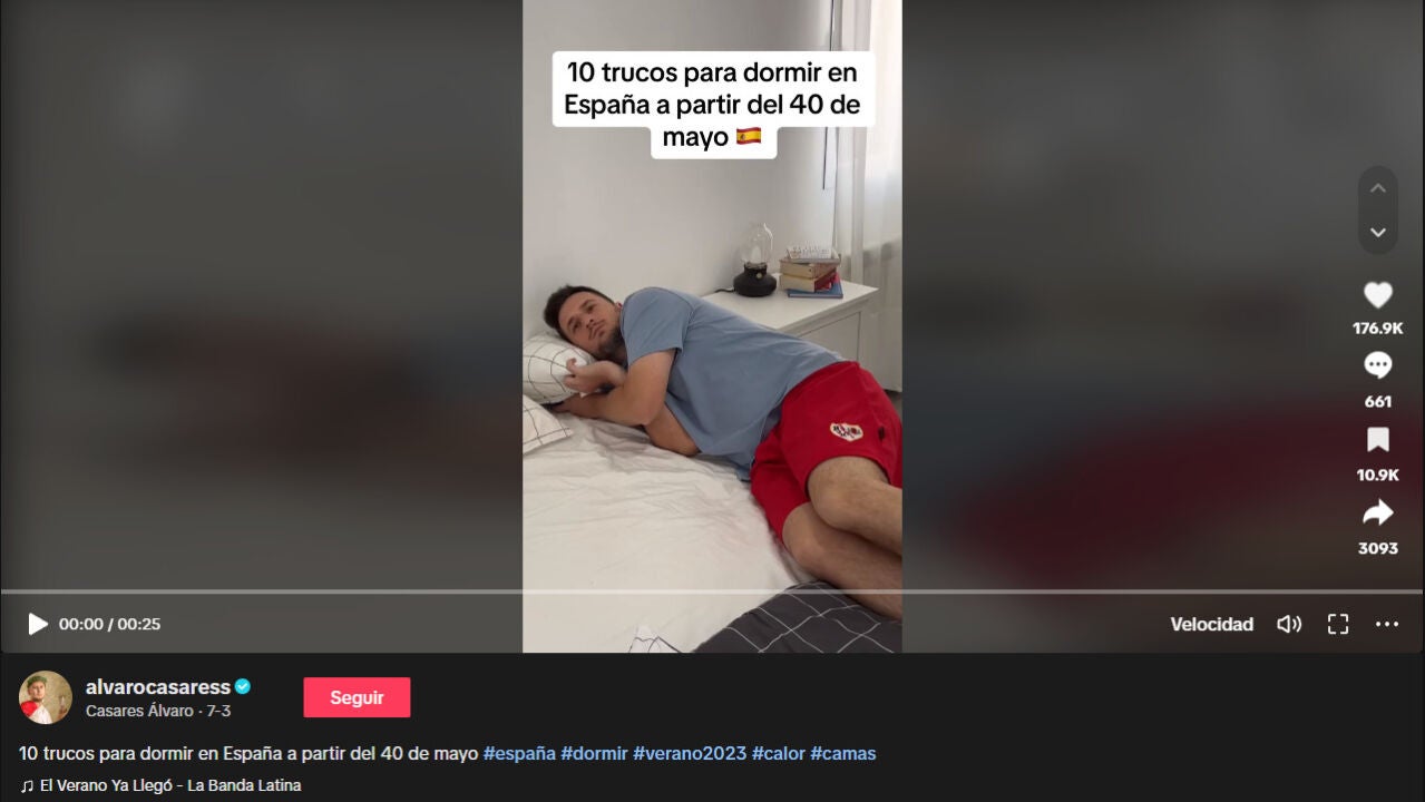 Muchos están comentando vídeo publicado en TikTok por el cómico Álvaro Casares explicando cuáles son los 10 trucos que tienes que seguir para dormir fresquito en España a partir del 40 de mayo ¿Cuáles de esos trucos has probado ya?