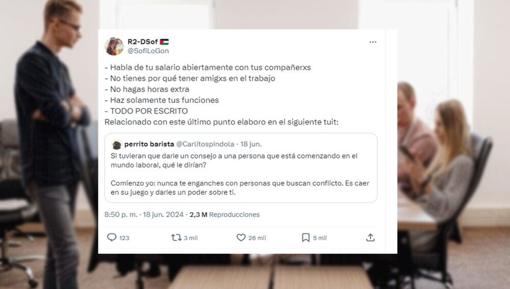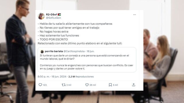 Un hilo de Twitter/X se ha vuelto viral en las últimas horas por ofrecer consejos directos y sin filtros para quienes se adentran en el mundo laboral. Los tuits, llenos de pragmatismo, son pequeñas perlas de sabiduría que, sin lugar a dudas, pueden resultar muy útiles a más de uno, por lo que recomendamos apuntar algunos de ellos porque, en algún momento, cuando menos lo esperemos, nos pueden ser necesarios.