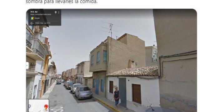 El tuitero ha querido recordar el momento ahora que ya se han ido y no están entre nosotros con está imagen tomada por el coche de Google en una pequeña calle de la localidad alicantina de Aspe.
