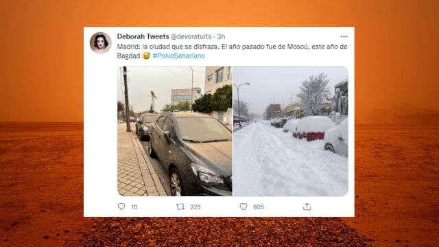 Además de traer calor, barro, llenarlo todo de polvo y de teñir los cielos de naranja la calima nos ha dejado numerosos memes en Twitter. Desde referencias a películas como 'Mad Max', 'Interestellar' o 'Indiana Jones' a las esperadas bromas sexuales.