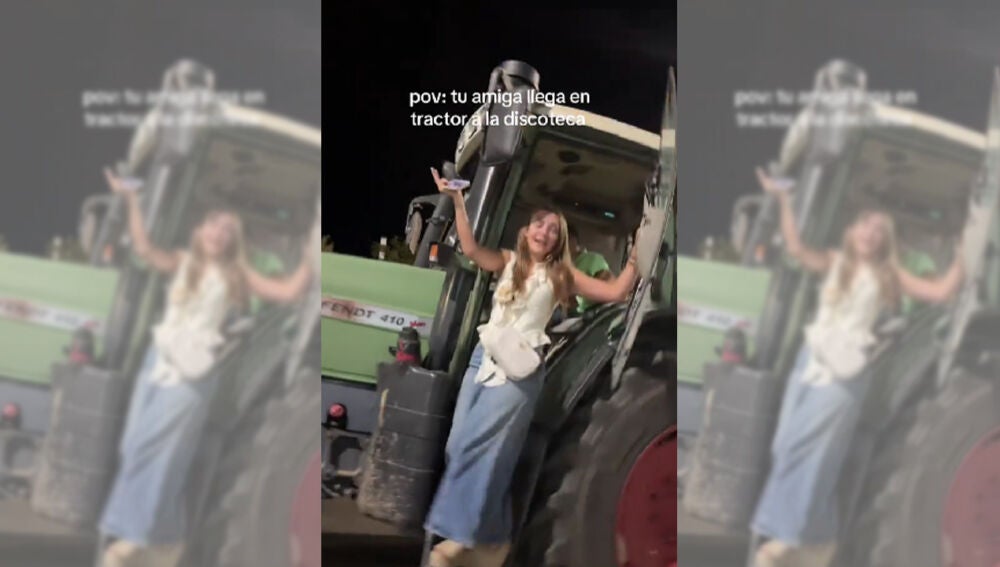 La escena dura apenas unos segundos, pero ha bastado para conquistar a las redes. En un vídeo que ya acumula cientos de miles de visualizaciones, una joven aparece llegando a la puerta de una discoteca subida a un tractor agrícola de la marca Fendt, conducido por un chico. Al detenerse el vehículo, ella se baja con total seguridad y estilo, como si fuera lo más normal del mundo.
