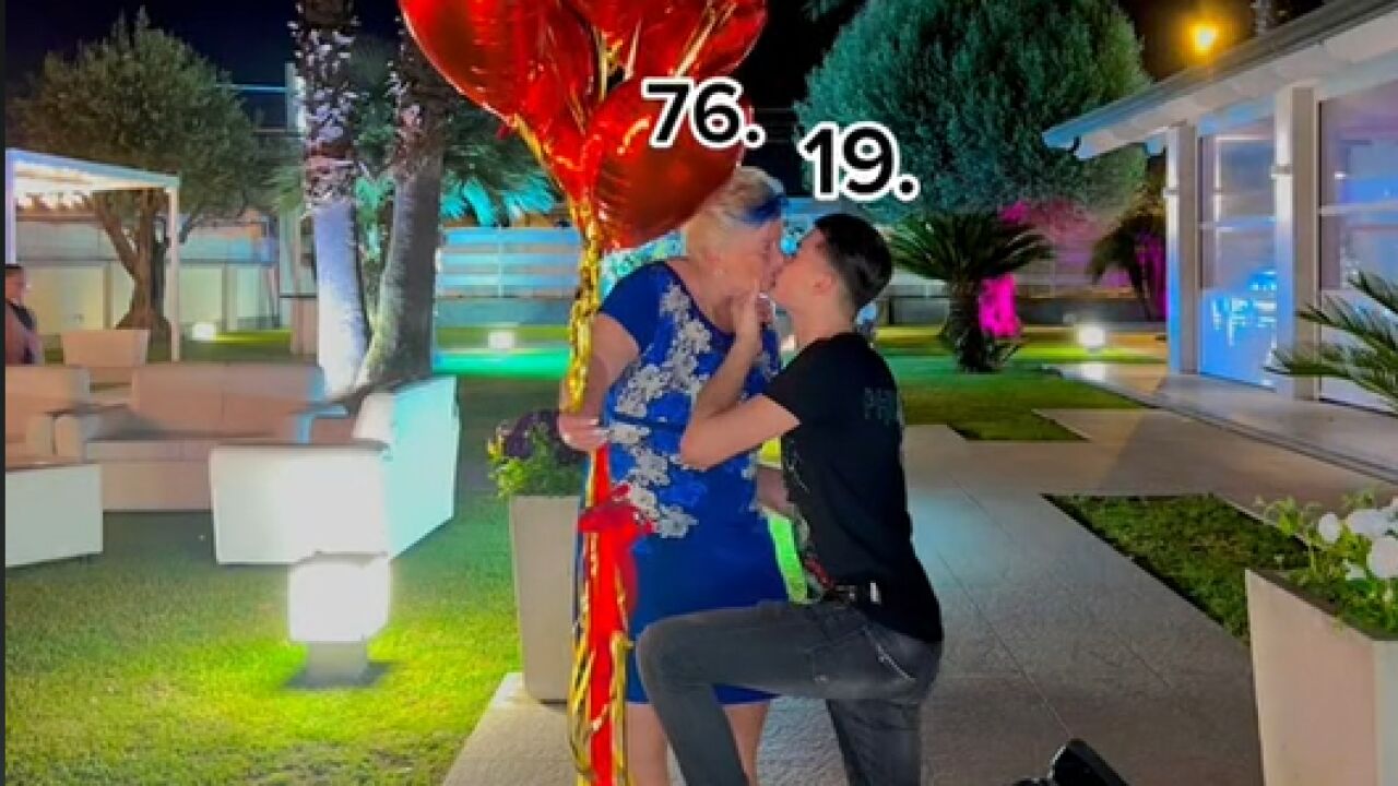 El italiano Giuseppe D’Anna, de 19 años, revolucionó TikTok tras subir un video pidiéndole matrimonio a su novia, un mujer cinco décadas más mayor. El vídeo se titulaba "La nostra promessa" que en español se traduce como ‘"nuestra promesa". El clip en cuestión, ha sido visto más de 29 millones de veces,muestra al joven arrodillado con más de una docena de enormes globos rojos en forma de corazón y besando apasionadamente a su amada.