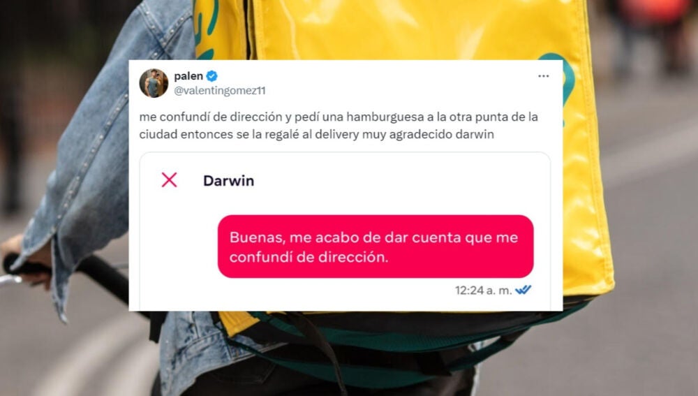 "Me confundí de dirección y pedí una hamburguesa a la otra punta de la ciudad, entonces se la regalé al delivery. Muy agradecido, Darwin", reveló el usuario @ , compartiendo la conversación entre ambos por el chat de la empresa.