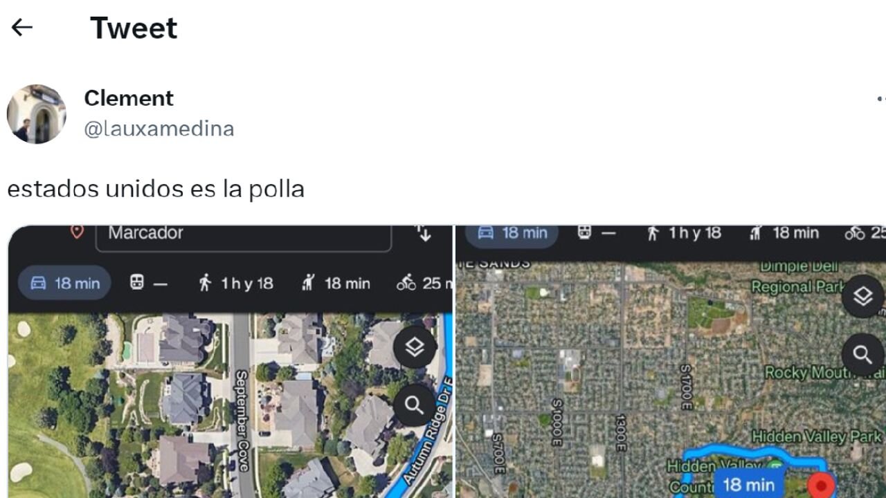 Así lo demuestra la captura de pantalla que ha compartido el usuario de Twitter @lauxamedina, en la que se ve una zona residencial de la ciudad de Sandy, en Utah (Estados Unidos).