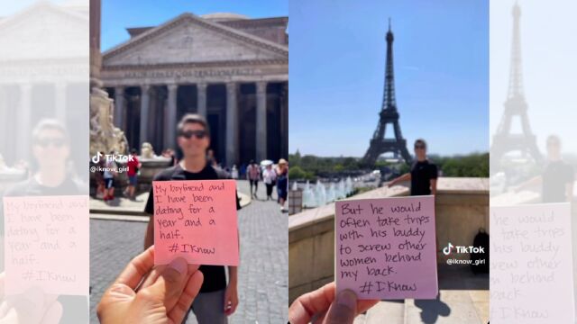 Tal y como comparte en el TikTok en el que ha subido esta pequeña venganza, se enteró de su infidelidad justo antes de hacer un viaje de nueve meses por Europa, en el cual no solo había invertido mucho dinero, sino que perdería también mucho más si lo cancelara. Por este motivo, optó por irse con él de viaje y no decirle que lo sabía hasta que estuviera de vuelta en su casa. Pero, para que le fuera más fácil procesar todo lo que había descubierto, optó por escribir sus pensamientos y emociones en diferentes pósits, a los cuales les sacaba una foto con él de fondo por los diferentes lugares que iban visitando por Europa.