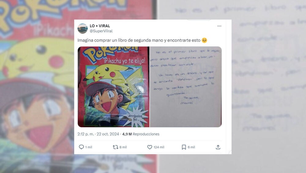 Un usuario compartió la imagen de una dedicatoria que encontró en un libro de segunda mano y que ha conmovido a miles de personas en todo el mundo. El mensaje, escrito por una madre a su hijo en un libro de Pokémon, ha generado numerosas reacciones de nostalgia y tristeza.