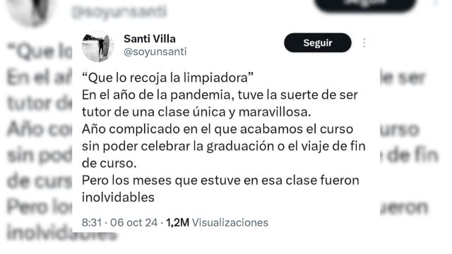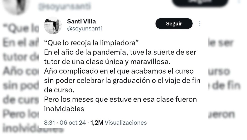 Todo comenzó un día aparentemente normal. Santi, tutor de una clase de primaria en plena pandemia, pidió a sus alumnos que recogieran un papel del suelo. Sin pensarlo dos veces, uno de los niños lanzó una frase desafortunada: "Que lo recoja la limpiadora". Lo que pudo haber quedado como un simple comentario impulsivo, se convirtió en el inicio de una lección que Santi, junto a Clementina, la encargada de la limpieza del colegio, estaba dispuesto a enseñar.