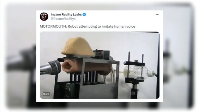 Parece que la intención de los creadores de este robot era imitar la sonoridad de la voz humana al máximo: haciendo que el aire pase por unas cuerdas vocales artificiales y resuene en una cavidad del mismo volumen y características que la de las personas. La casualidad ha querido que el sonido que acaba saliendo de esta proeza de la ingeniería sea prácticamente clavado a la voz de Quevedo, sobre todo cuando canta.