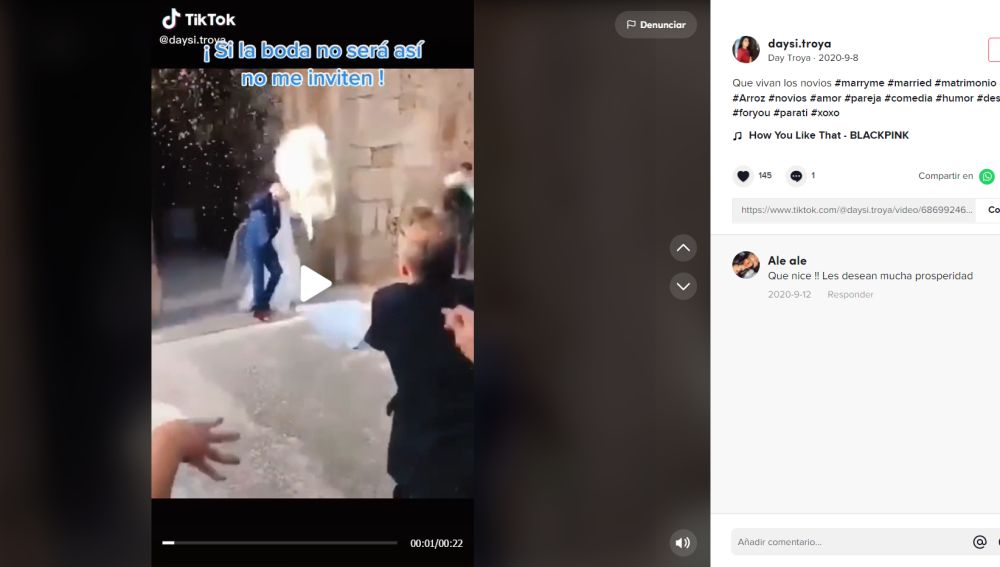 Luego de aceptar unir sus vidas en matrimonio, los recién casados suelen ser recibidos con arroz, que simboliza la fertilidad y la abundancia. Sin embargo, un video viralizado en TikTok mostró cómo un grupos de amigos les dio una efusiva bienvenida a los esposos y, con la ayuda de palas, los bañó en grandes cantidades de arroz.