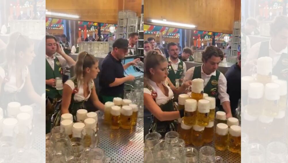 Sin duda, la habilidad de esta camarera del Oktoberfest es digna de admirar, y no sería de extrañar que cada vez que lleve la comanda a sus clientes estos se sorprendan e incluso le aplaudan, porque si hay algo que está claro, es que esto es algo que no se ve a diario.