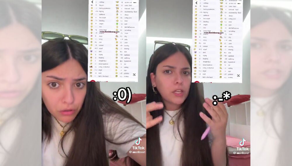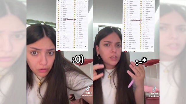 "Acabo de ver lo que las personas usaban antes de usar emojis y me he quedado tiesa. Si esto de verdad lo usaba la gente, eran mucho más listos que nosotros, porque es que necesitas un máster. Yo que sé, el pico tres para hacer el corazón, los dos puntos y el paréntesis para la carita sonriente… eso tiene sentido. Pero de repente dos puntos, un círculo y un paréntesis es un payaso: payaso me quedo yo si tú me mandas eso, Mari Carmen [...] Eso ni el código morse", ha dicho la tiktoker antes de repasar algunos de los otros emoticonos de Messenger.