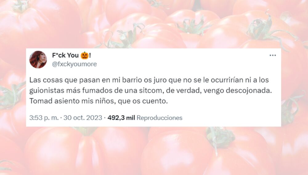 En ese momento, el hombre rápidamente se ha callado y se ha ido corriendo con el coche todo manchado, algo que ha provocado que la tuitera alabe la puntería que tenía esta chica, ya que en un momento se lo ha dejado tan mal como si lo hubiera llevado a la Tomatina. Además, por si la reacción de la chica no hubiera sido suficiente, después de que se fuera el coche se ha girado para decirle a la tuitera que lo que lo malo es que ahora tenía que volver a ir a por tomates, algo que ha hecho reír a ambas a carcajadas.