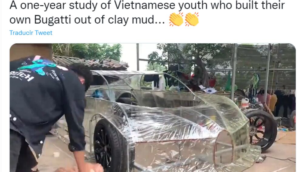 Los jóvenes del canal de televisión vietnamita NHET llevaron a cabo una de las creaciones más atrevidas hasta la fecha: un Bugatti Chiron elaborado completamente con arcilla. Según han relevado los propios autores del coche, tardaron más de un año en completar el proyecto. Gracias a su talento y a toneladas de paciencia, ahora ya pueden conducir su coche y pasearse por el pueblo como si fueran estrellas de cine.Para dejar constancia de su hazaña, los creadores del coche han realizado un vídeo de 45 minutos de duración, en el que explican cómo han desarrollado por completo, el ya apodado "Chiron de arcilla". Para crear su Chiron, construyeron un marco de acero con la forma básica del deportivo y luego comenzaron a aplicar capas de arcilla a mano.