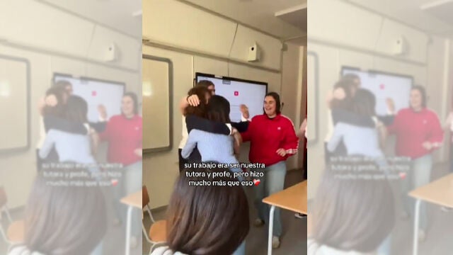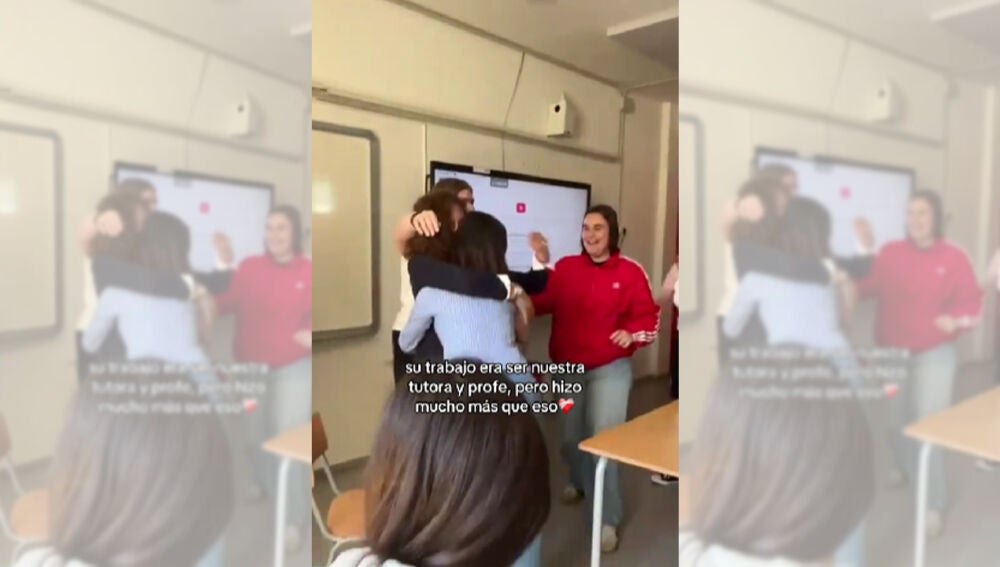 Al ver las imágenes, la profesora rompe a llorar, incapaz de contener la emoción. Sus alumnos, que graban la escena en silencio, se acercan a abrazarla. Un gesto que habla de una conexión especial y de una etapa que, claramente, ha dejado huella en todos.