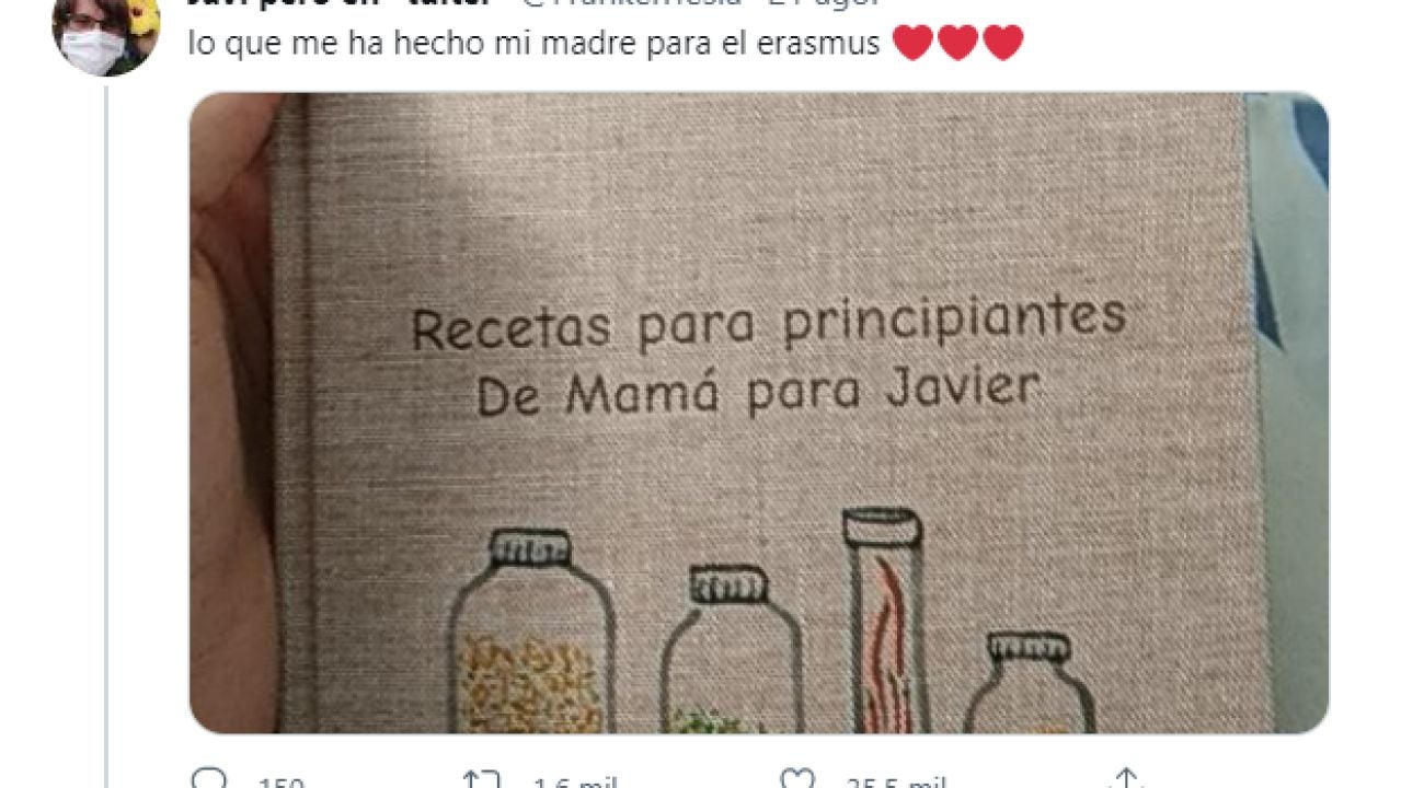 Muchos estudiantes están acostumbrados a que sus padres les cocinen y suelen tener un repertorio muy básico cuando les toca vivir fuera de casa, por eso, la madre de Javier ha pensado que era una buena forma de asegurarse que su hijo esté bien alimentado durante su Erasmus además de llevarse un detalle que podrá guardar para siempre.