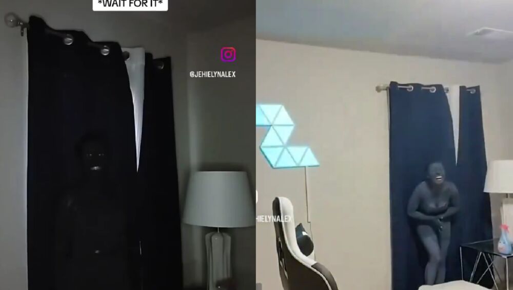 Esto es algo que, sin duda, ha conseguido la protagonista de este vídeo viral, quien le ha gastado una broma a su marido que es tan graciosa como terrorífica. Porque, tal y como se ve en él, la chica decide pintarse todo el cuerpo de azul para conseguir camuflarse en las cortinas de la habitación de su marido, algo que ha conseguido tan bien que prácticamente no se la ve a no ser que abra los ojos o sonría.