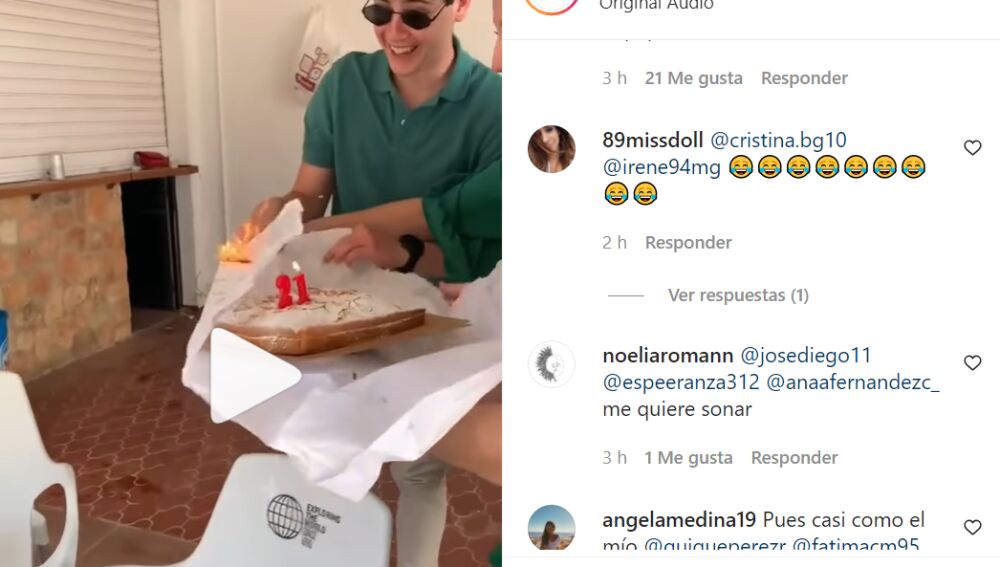 El vídeo se vuelto viral en Instagram, luego de que los jóvenes decidieran compartir uno de los momentos más curiosos de la historia de los cumpleaños. El clip cuenta con más de 16 mil likes y miles de comentarios, que ponen en duda la actuación de los jóvenes contra el fuego. El problema estuvo en que el papel que envuelve la tarta, fue agitado por un fuerte viento (estaban celebrando el cumple en una terraza), lo que hizo que las velas (ya encendidas) prendieran el envoltorio de la tarta. Esto hizo que el portador de la tarta tuviera que dejar el postre en llamas en el suelo, ante las risas y gritos de todos los presentes.
