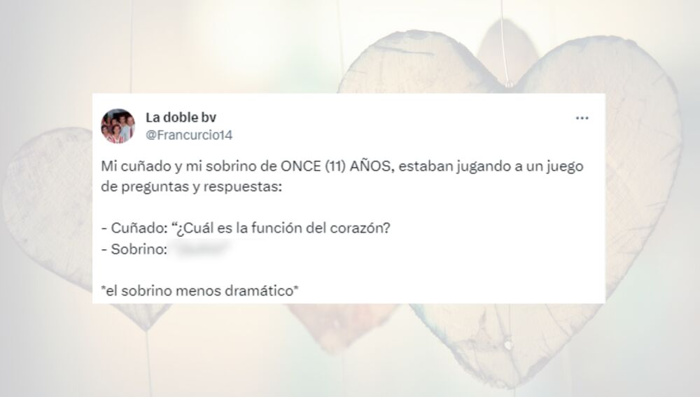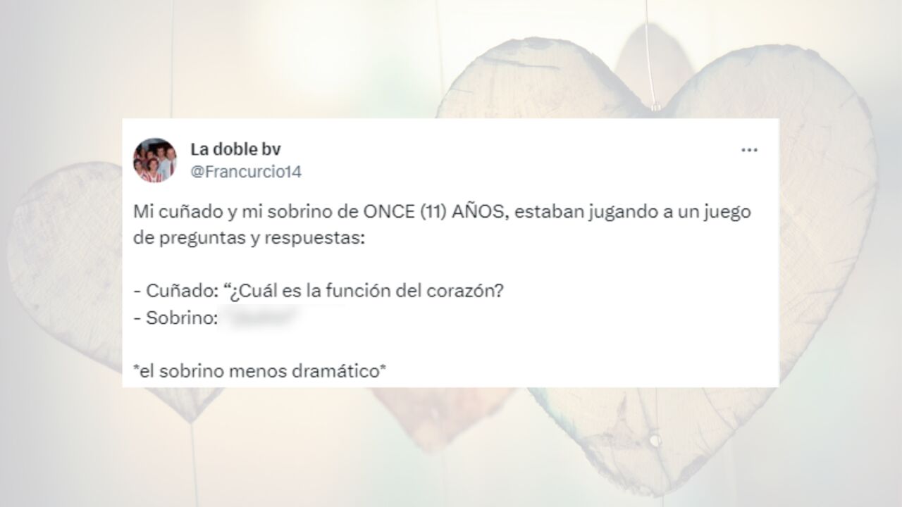 Este tuitero ha compartido uno de los momentos más divertidos que se ha dado en su familia, algo que ha ocurrido cuando su sobrino le ha dado a su cuñado una de las respuestas más inesperadas ante la pregunta "cuál es la función del corazón".