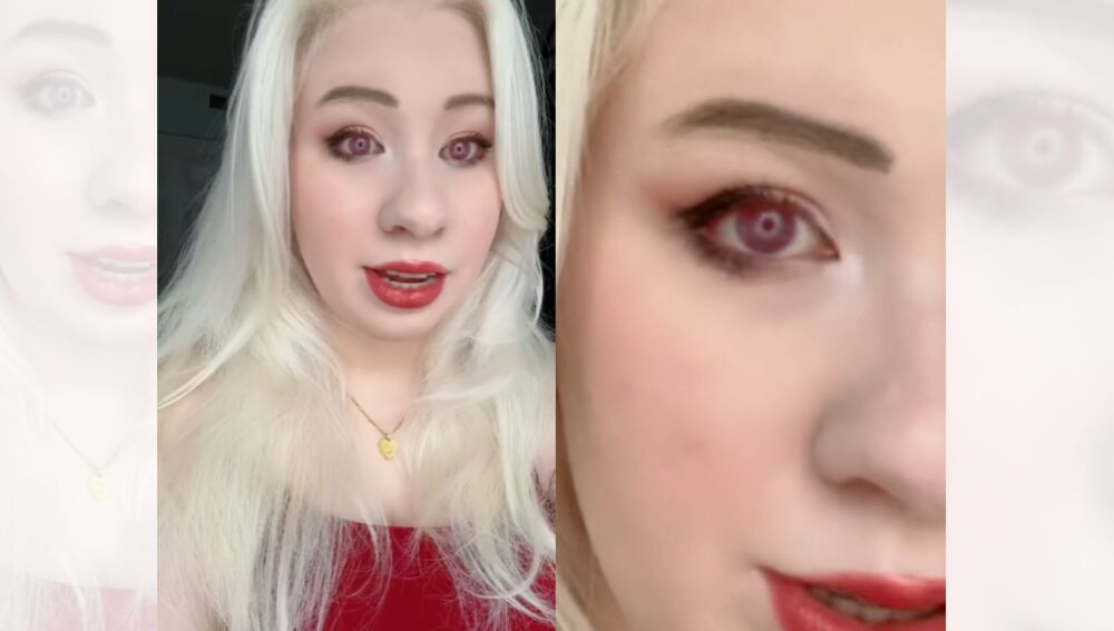 Esta tiktoker ha sido acusada de mentir sobre su albinismo y sobre llevar lentillas de color, por lo que ha decidido explicar el motivo científico por el que sus ojos se ven de color rojo o lila de forma natural.