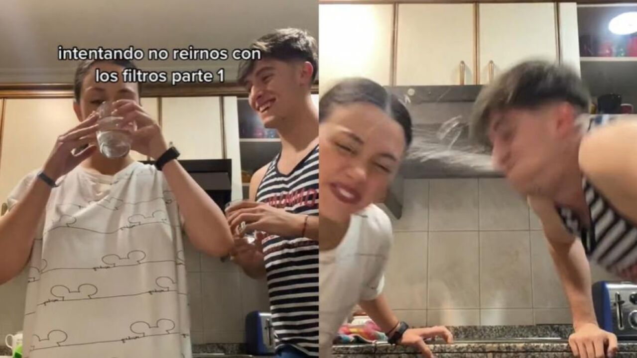 La pareja de tiktokers @_h.iniesta y @pauu.martiinezz han compartido este challenge grabado en la cocina de su casa probando los filtros más extraños y no pueden aguantar ni la risa ni el agua en su boca.