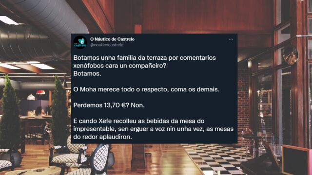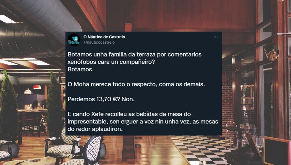El local "O Náutico de Castrelo", situado en la provincia gallega de Ourense, no se esperaba para nada los clientes que iban a llegar. Una familia se sentó en una de las muchas mesas que tienen para pedir unas cuantas copas. Mientras que tomaban lo que habían pedido, empezaron a insultar a Moha, uno de los camareros del restaurante.