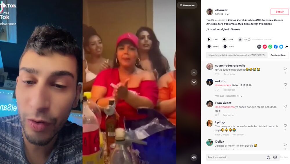 El tiktoker y streamer @elsanxez ha hecho un vídeo en respuesta a la publicacion viral de unas amigas cantando en una fiesta con unas botellas de alcohol con la alarma del supermercado puesta. La publicación cuenta con más de dos millones de reproducciones y más de 160.000 'me gusta'